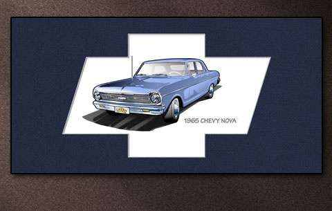 1965 Chevy Nova MATTED PRINT is 20" X 10" and will fit a standard 20 X 10 frame available at Michael's, Hobby Lobby and all custom frame shops.